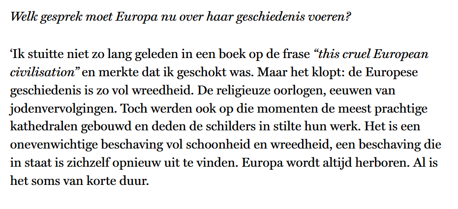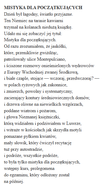 Ik heb de Engelse vertaling van Clare Cavanagh vertaald. Het oorspronkelijke artikel kunt u nalezen in The New York Review of Books, de editie van 23 september 2004. Het artikel – oorspronkelijk in het Pools geschreven in 2001 – is ook opgenomen in de essaybundel: Adam Zagajewski, A Defense of Ardor: Essays (vert. Clare Cavanagh), New York: Farrar, Straus and Giroux 2004, p.121-125.
